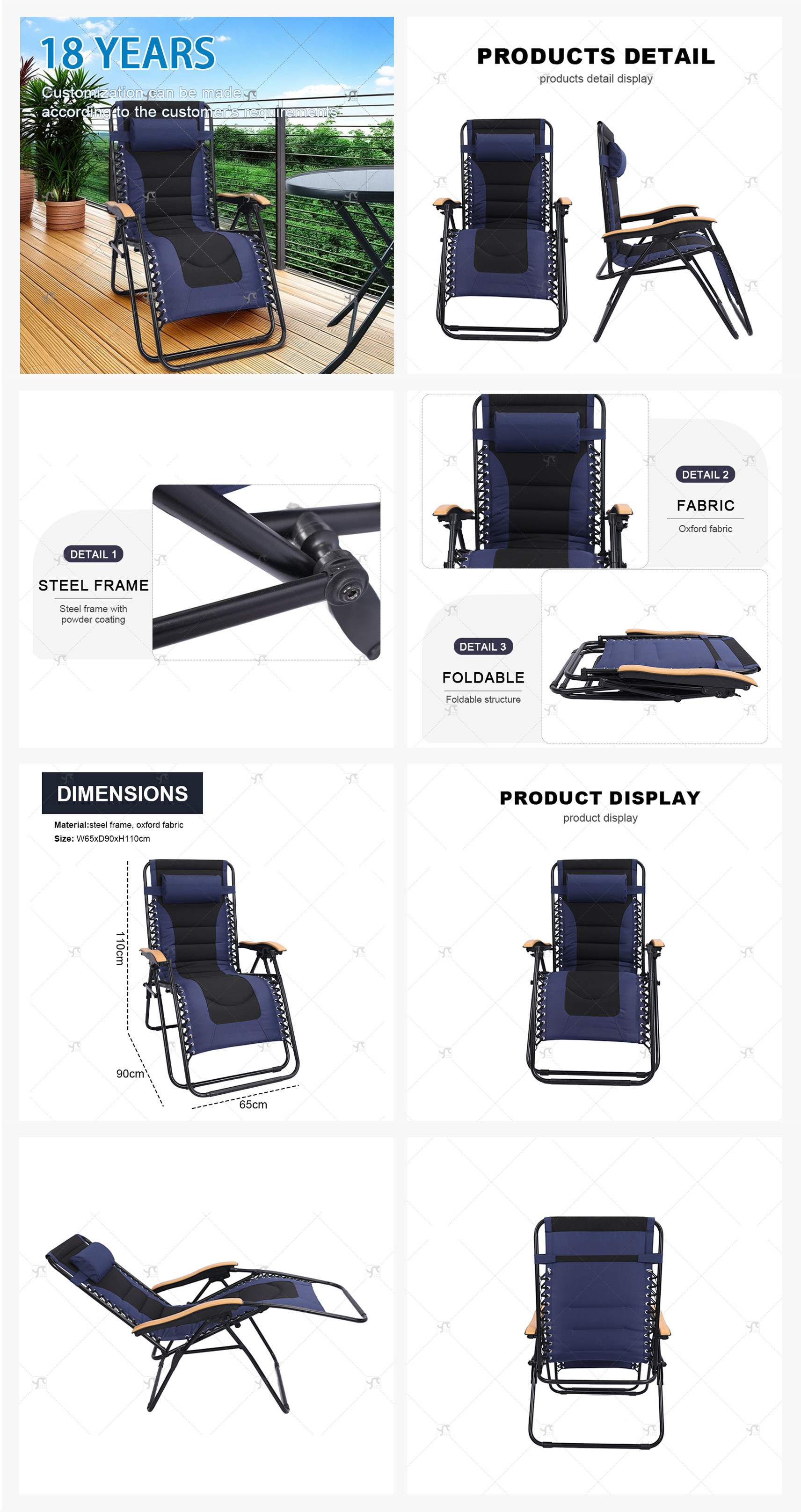Sun Lounger Desgin Outdoor Adjustable Folding Zero Gravity Recliner Lounge Hiking Camping Beach Sun Tanning Chair