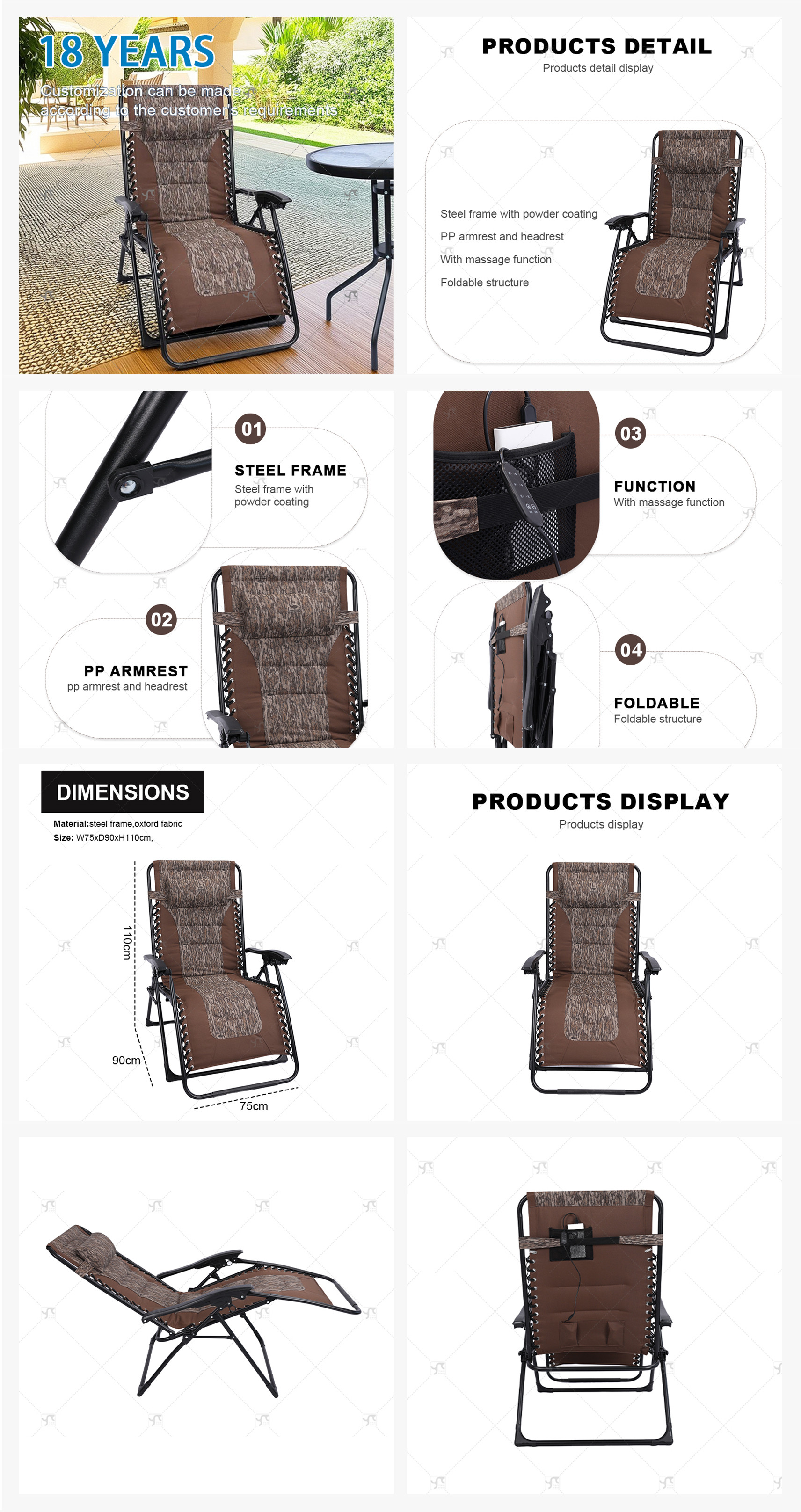 Outdoor Multi-Position Adjustable Compact Metal Frame Foldable Chair Adjustable Backrest for Vila Basement Park Outdoor Leisure
