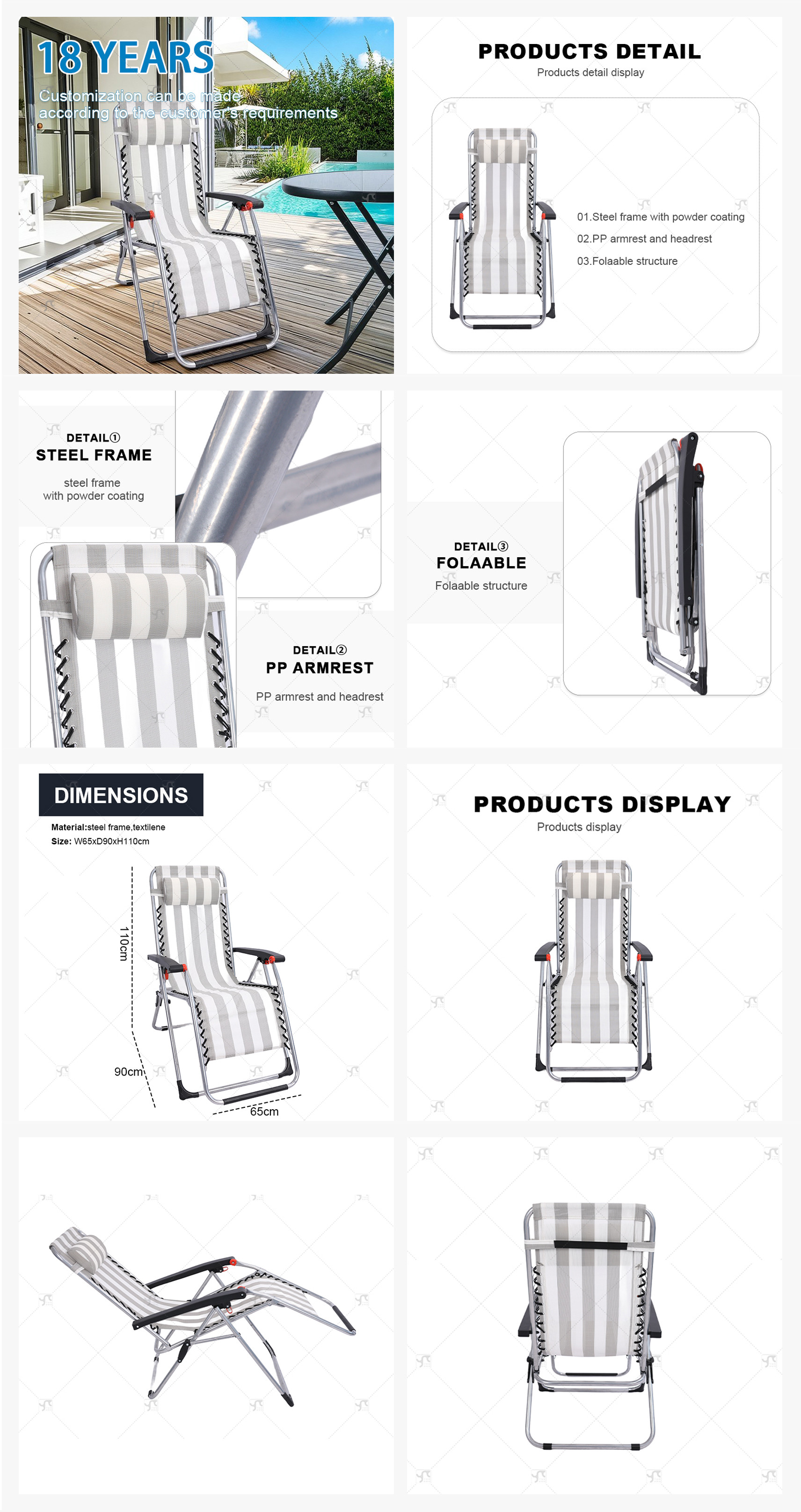 Sun Lounger Desgin Outdoor Adjustable Folding Zero Gravity Recliner Lounge Hiking Camping Beach Sun Tanning Chair