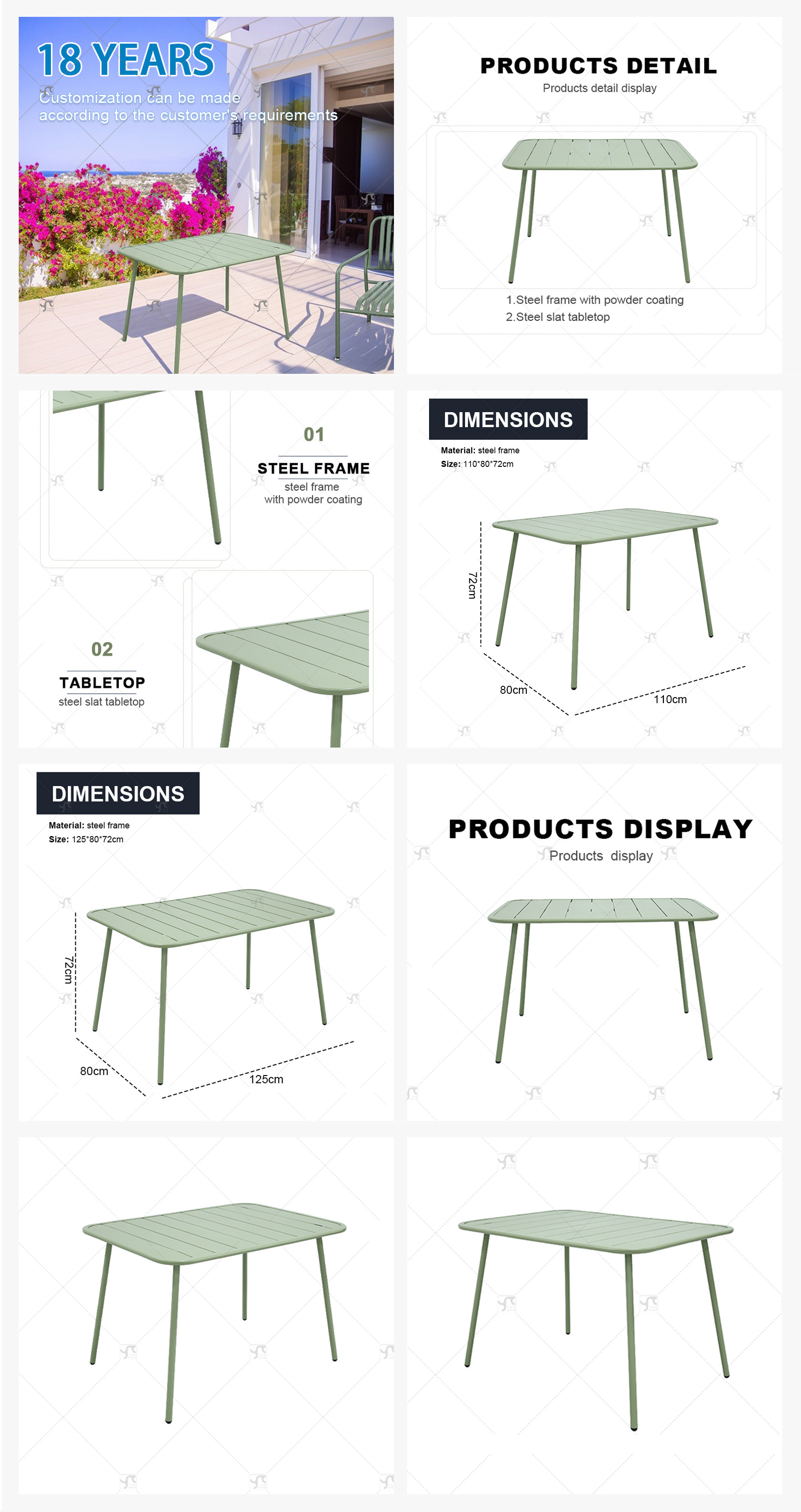 Outdoor Steel Tables Restaurant Metal Rectangle Coffee Table Aluminum Dining Chairs for Coffee Shop Steel Slat Arden Steel Table