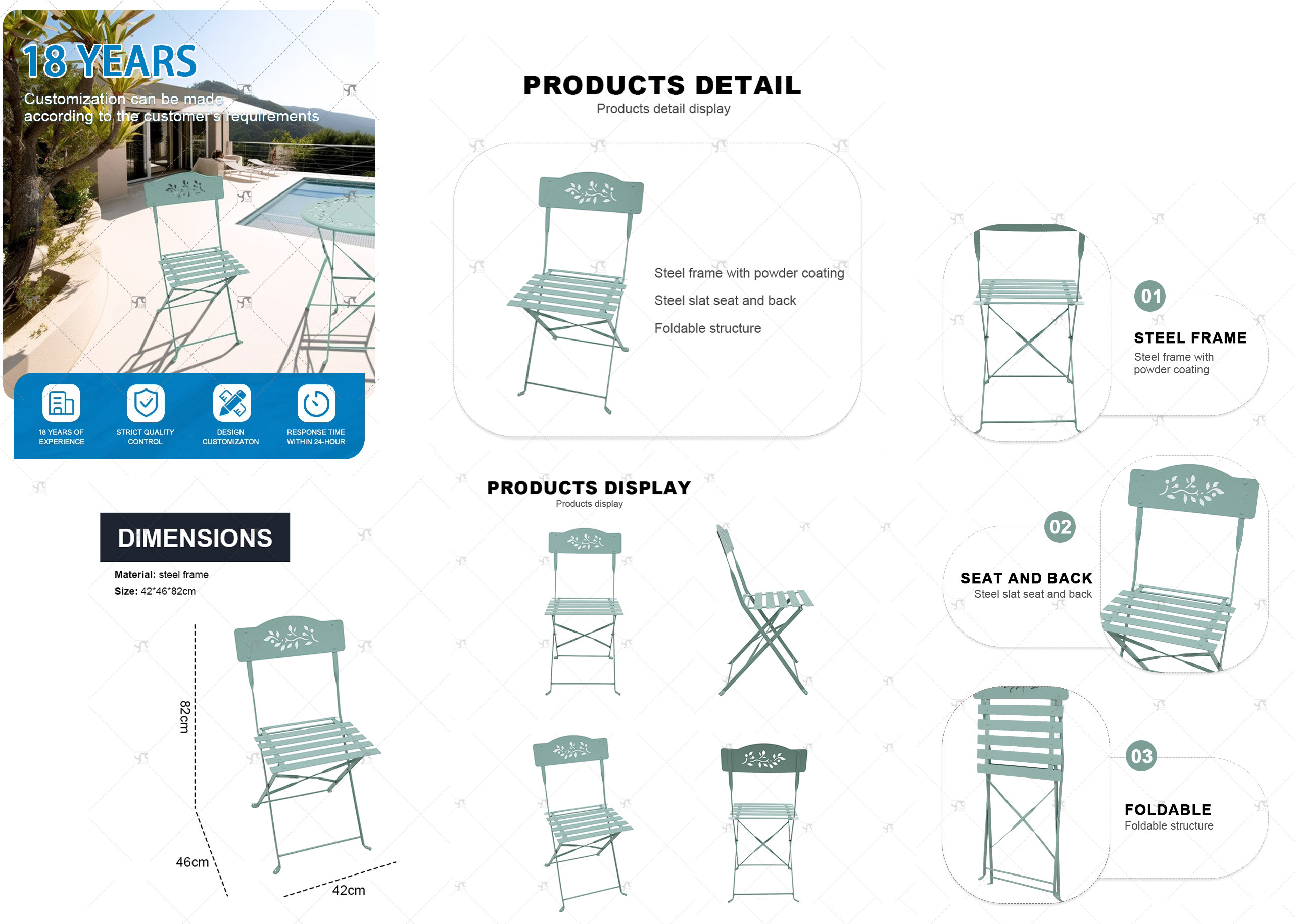 Outdoor Patio Metal Folding Steel Chair