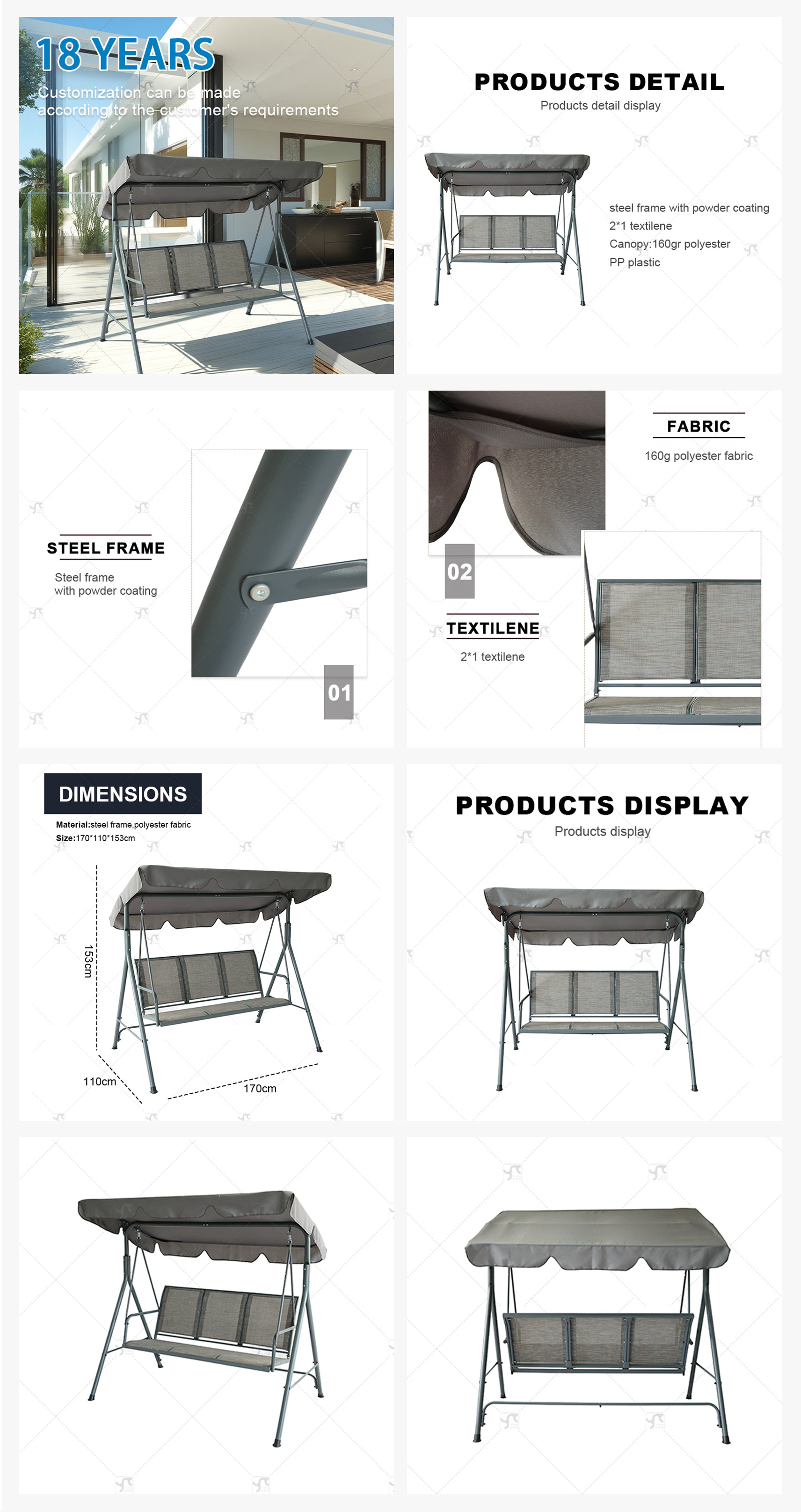 High Quality 3 Seater Steel Leisure Outdoor Garden Bench Seat Swing Chair-Cloudyoutdoor