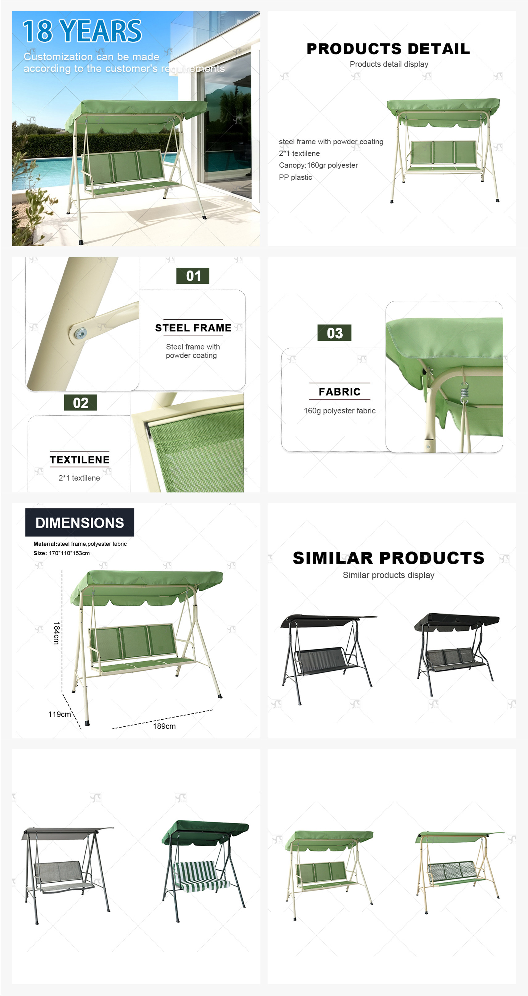 Hot Sale Outdoor 3 Seats Teslin Garden Swing Chair for Balcony-Cloudyoutdoor