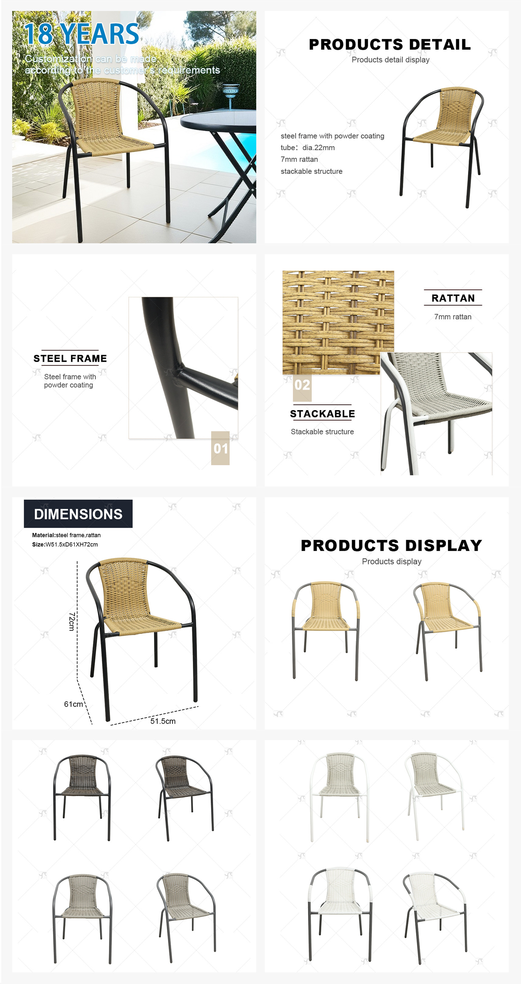 Modern Outdoor Leisure Stackable Chair With Rattan Design Single Iron Back Stool for Courtyard Conference Balcony Home Use