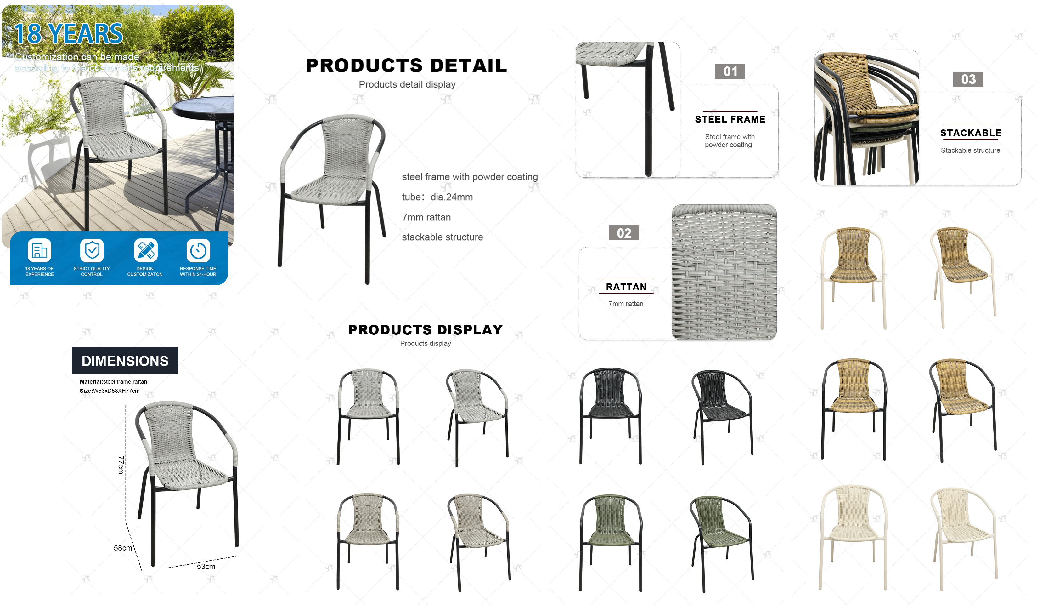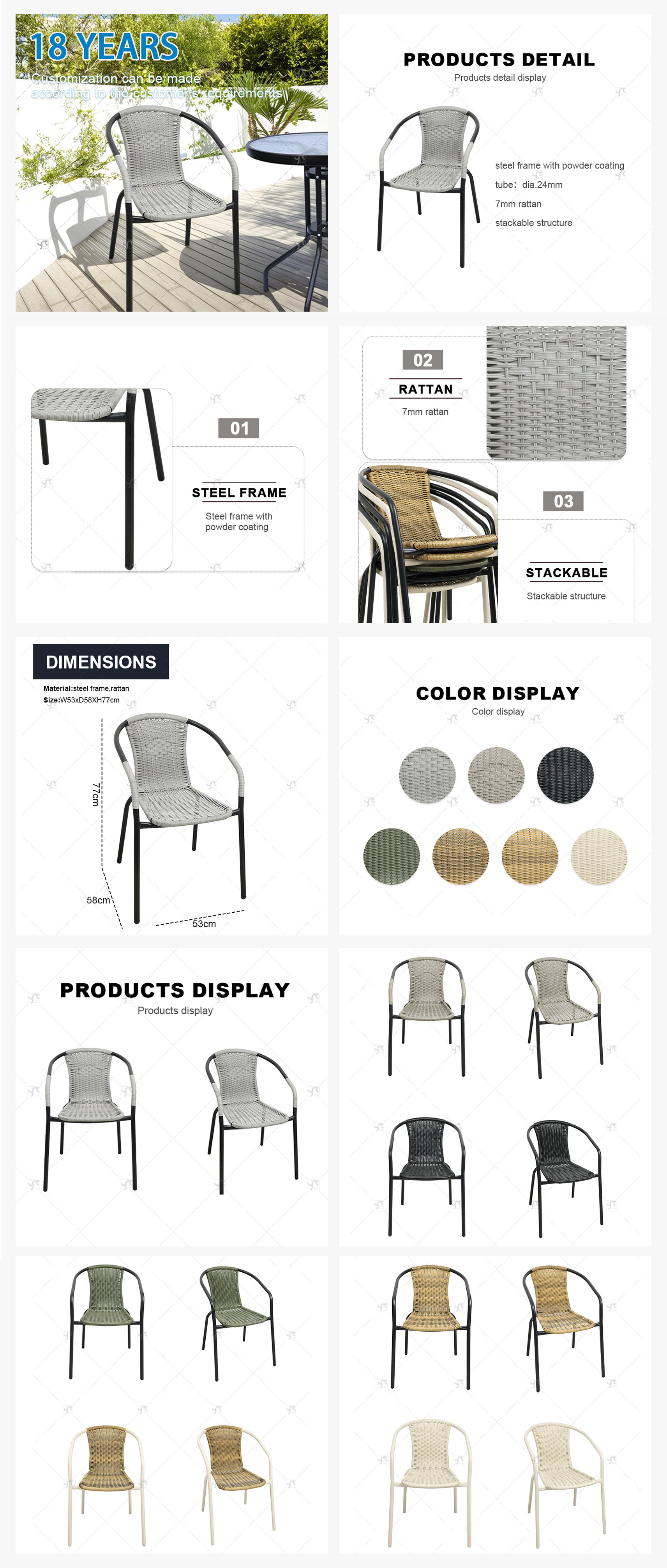 Outdoor Furniture Leisure Chairs Rattan Backrest Chairs Outdoor Patio Seats for Coffee Shop Outdoor Restaurant for Courtyard Use
