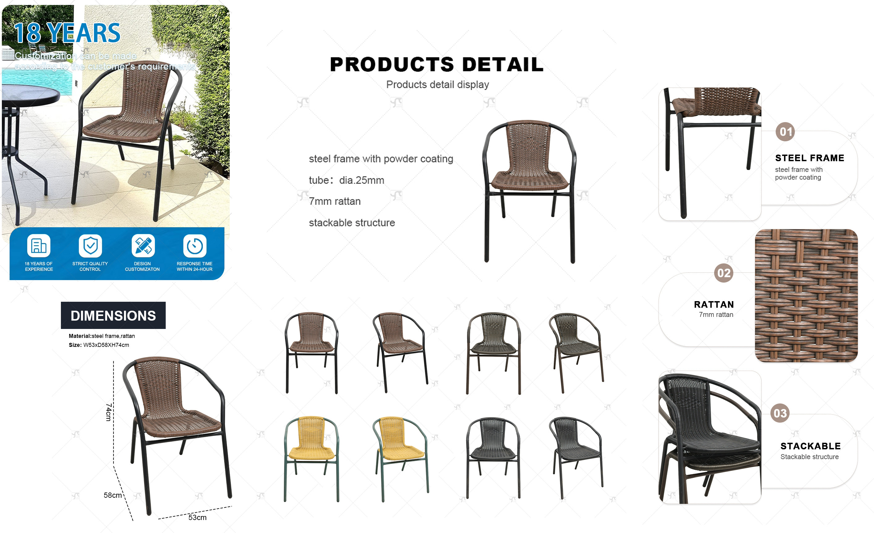 Outdoor Patio Metal Steel Rattan Chair