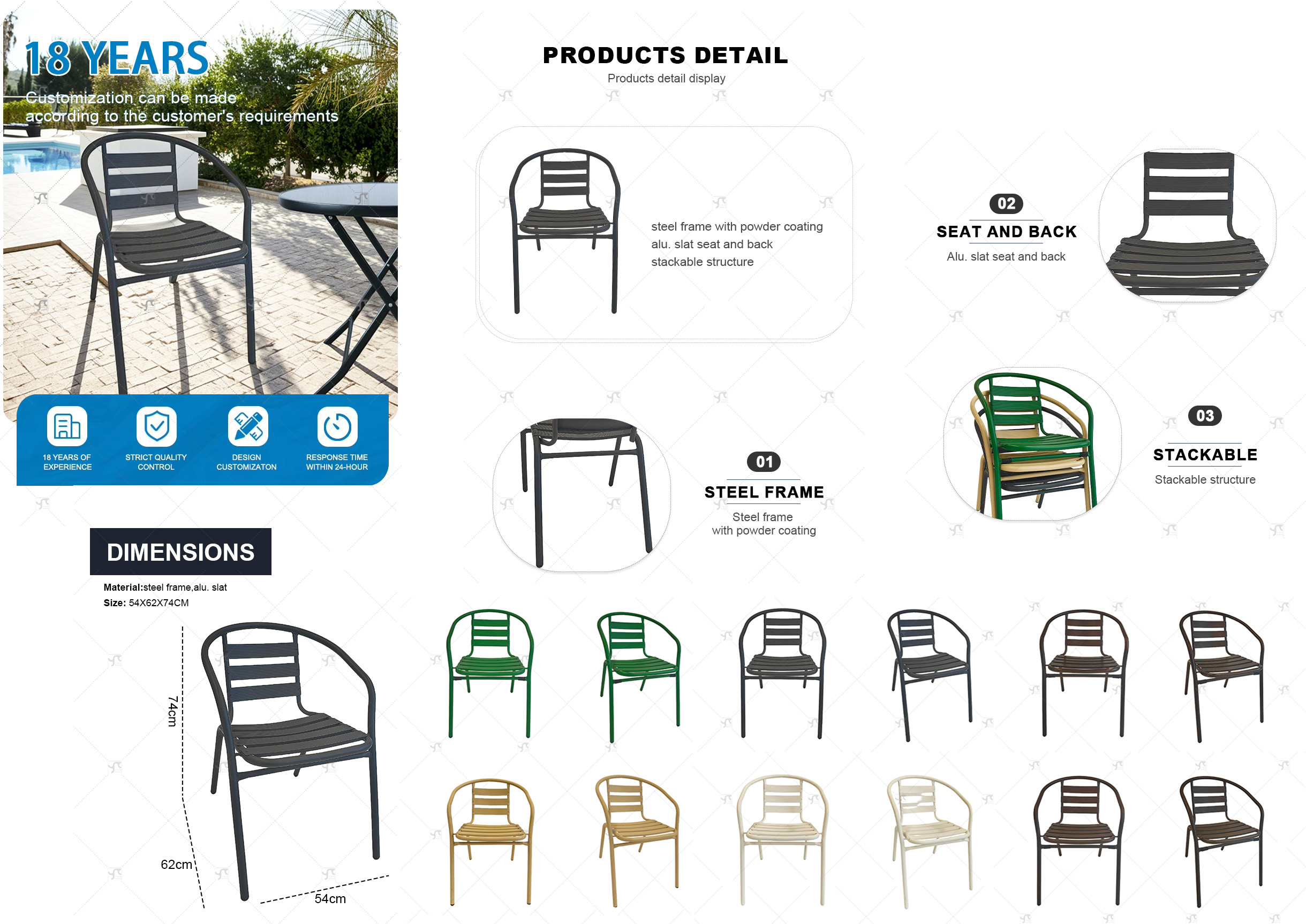 Outdoor Garden Steel Frame Stackable Chair Cafe Garden Portable Modern Restaurant Cafe Furniture Dining Chairs for Events
