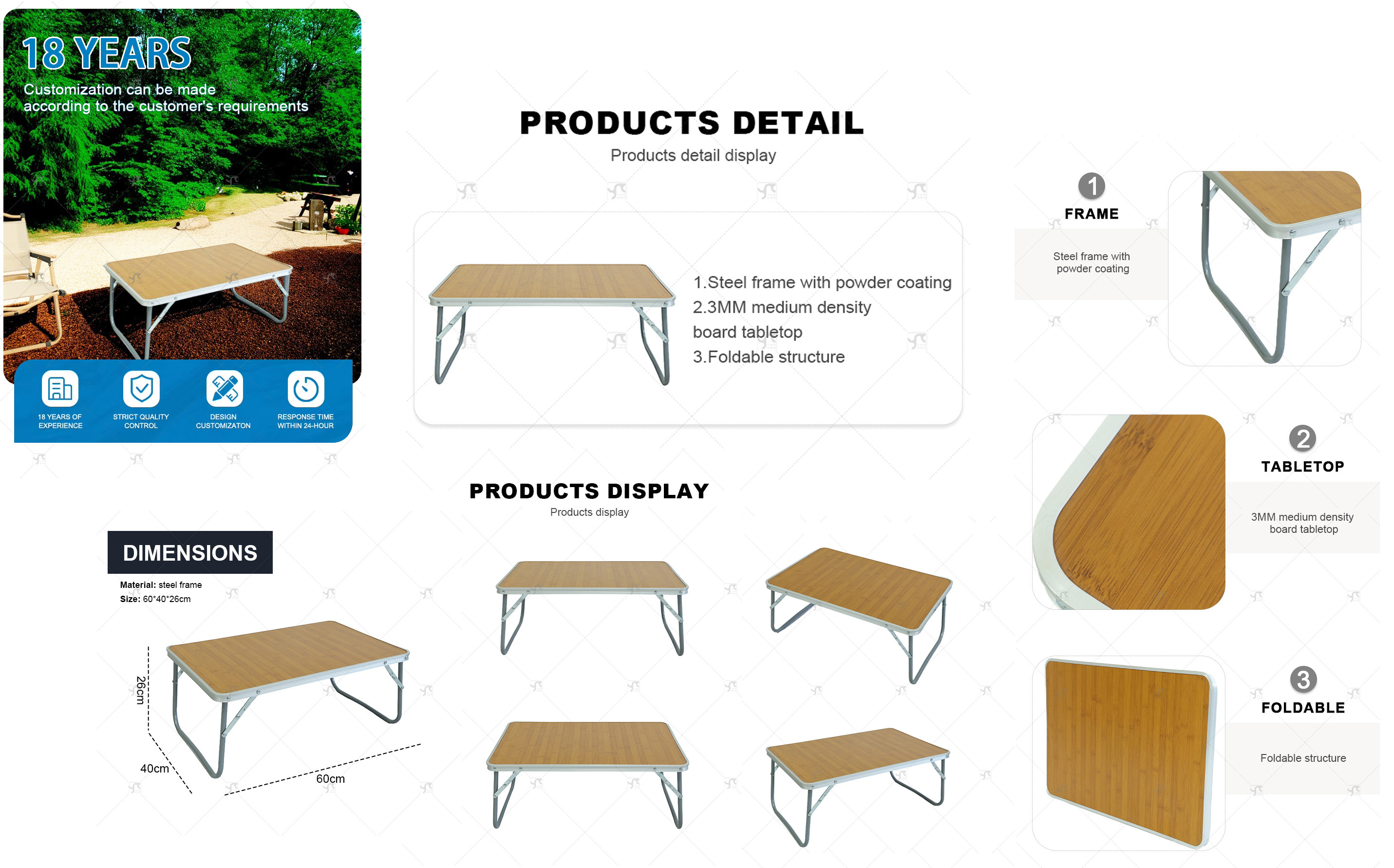 Outdoor Steel Folding Table Picnic Barbecue Bamboo Wooden Bamboo Tabletop Camping Portable Furniture Bed Computer Portable Table