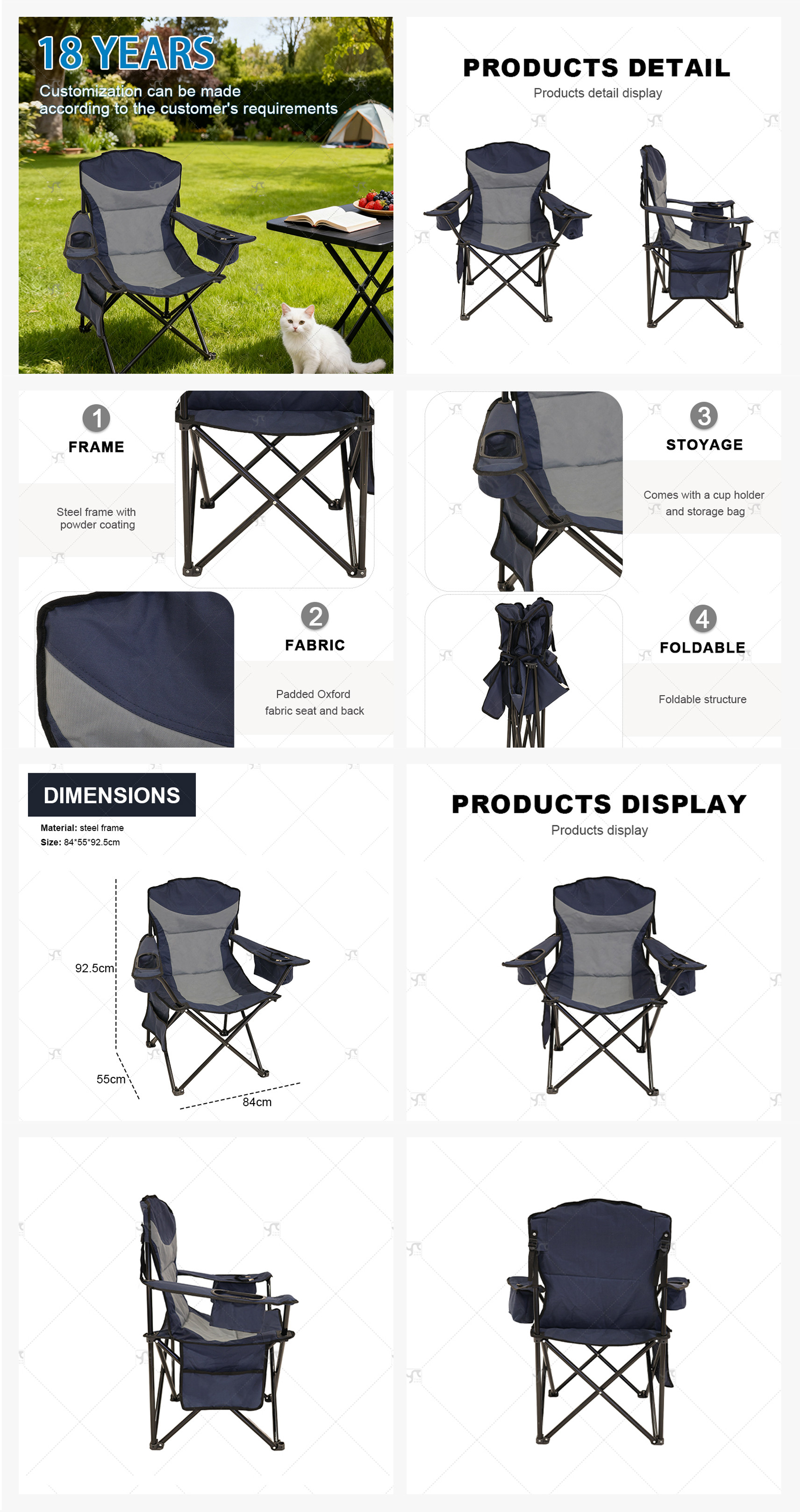 Outdoor Travel Leisure Chair Portable Camping Chair Heavy Duty Folding Design High Back Padded with Cup Holder and Carry Bag