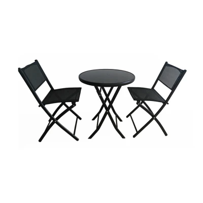This set's powder-coated steel frames withstand heavy weights to ensure the table and chairs will remain stable as you lounge